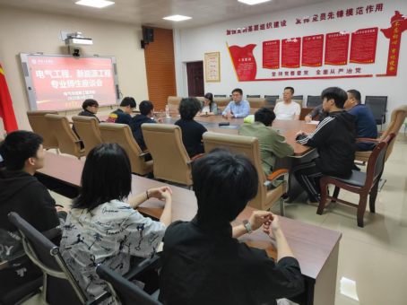 加深电气工程和新能源工程专业学生对本专业的认识,解答同学们在学习和就业上的疑惑,4月23日晚上,电气工程和新能源教研室在电气楼407会议室举行师生座谈会。本次座谈会由电气工程教研室主任刘婷主持,新能源工程教研室主任蔡斌军、电气工程教研室副主任钟义长、电气工程教研室教师宋运雄和沈仕其出席,相关专业班级的学生干部代表参加。
