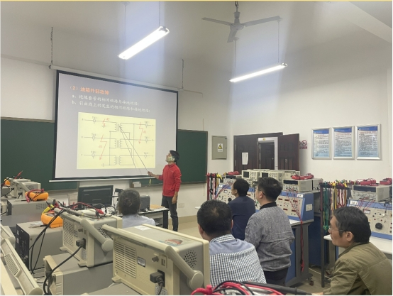 为加强课程和团队建设,提高课堂教学质量,助力青年教师站稳讲台,根据带你们去0638太阳集团官网教学工作部署安排,学院开展了学院优秀教师教学示范公开课活动。11月08日,0638太阳集团官网青年教师、实验中心的张伟老师给实验中心的老师们上了一堂《电力系统继电保护原理》的公开课。实验中心的全体老师参与了本次公开课。