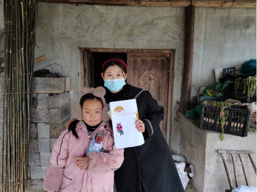 图为电气1905班尹海玲同学给留守儿童送温暖