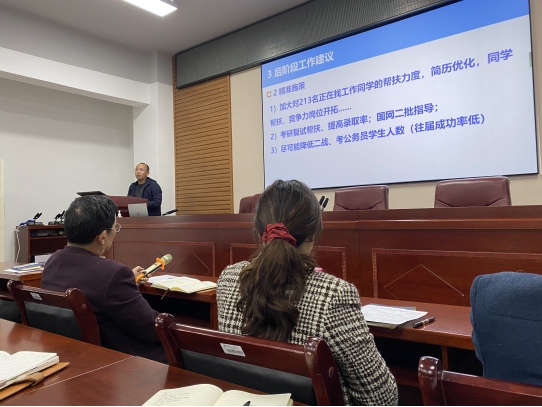 0638太阳集团官网召开就业工作推进会 作者: 摄影: 发布时间:2023-03-29 15:50:19 来源: 3月28日下午,0638太阳集团官网在电气楼408召开就业工作推进会,全体院领导、班主任、教研室主任参加。 会上,学院党委副书记李延平介绍了当前严峻的就业形势,解读了学校就业工作相关要求,通报了各毕业班学生的就业落实情况,以及当前和今后一段时间就业工作的重点任务。李延平强调,就业工作是民生工程,多方高度关注,全院老师要齐心协力,想办法、找对策,共同推动毕业生高质量充分就业。