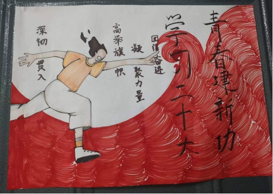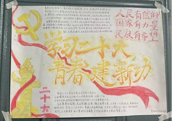 主持人陈旭敏带领大家学习了党的二十大报告的内容,通过视频教学的方式让同学们了解中国共产党建立百年来的艰辛与磨难。新时代青年应当自信自强、踔厉奋发,让爱党爱国爱校的种子在心里生根发芽。