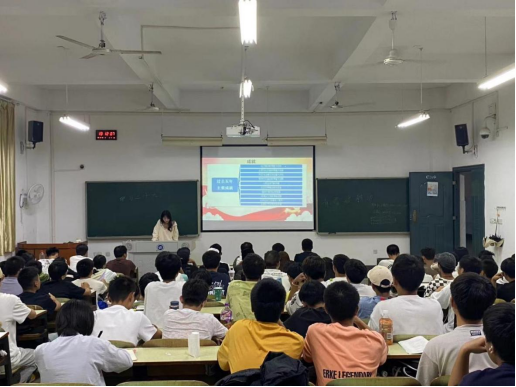 主讲人罗肇哲在开头讲述了党的二十大以来我国取得的瞩目成就,与同学们进行了理想与目标的讨论,同学们不仅了解了党的伟大成就,还明确了作为一名湖工人应当坚定理想信念,朝着目标不懈奋斗。