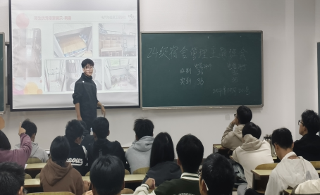 会上,各班生活委员阐述了宿舍管理的重要性,为同学们讲解宿舍卫生的标准,以及展示优秀宿舍,鼓励大家向优秀宿舍学习。接下来,会上尤其强调了宿舍用电安全、归寝安全和宿舍内的禁止行为。随后详细介绍了文明宿舍创建活动的具体安排,鼓励大家积极报名参加学院文明宿舍创建活动。