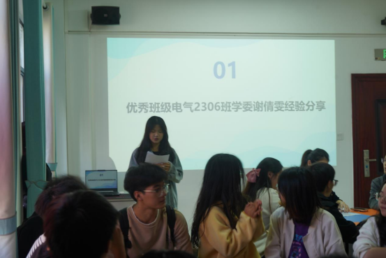 接着,优秀班级电气2306班的学习委员谢倩雯进行经验分享:严格做好课堂出勤记录,掌握每个同学的出勤信息,做到心中有数。
