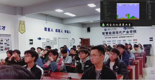 周圣杰学长从自身就业经历出发,分享自己参与“高速收费系统”“桌面端软件”“云服务系统”等项目的经验。用自己的真实创业经历,为同学们分析了规划就业方向的重要性,通过向同学们展示自己制作的程序软件,告诉了同学们C语言的多样性和实用性,激发同学们对编程软件的浓烈兴趣。