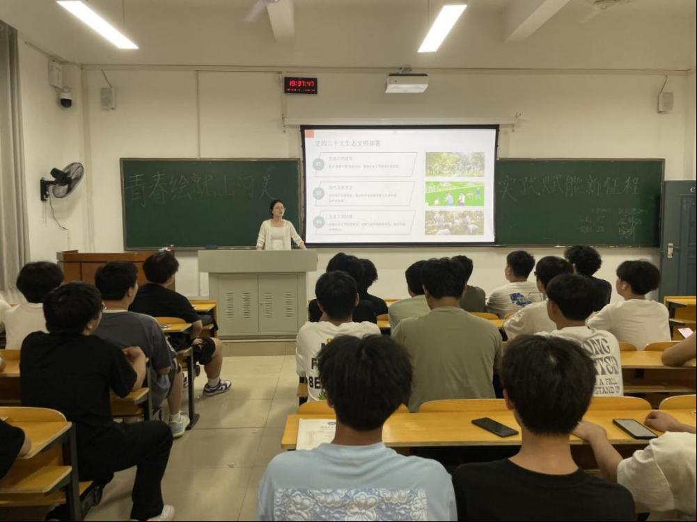 为深入学习贯彻习近平生态文明思想,引导广大团员青年树立绿色低碳发展理念,增强投身美丽中国建设的责任感和使命感,6月12日,0638太阳集团官网团委书记屈佩斯在电信2405班团支部讲授了“美丽中国 青春行动”主题团课,动员青年学子积极投身生态文明实践。