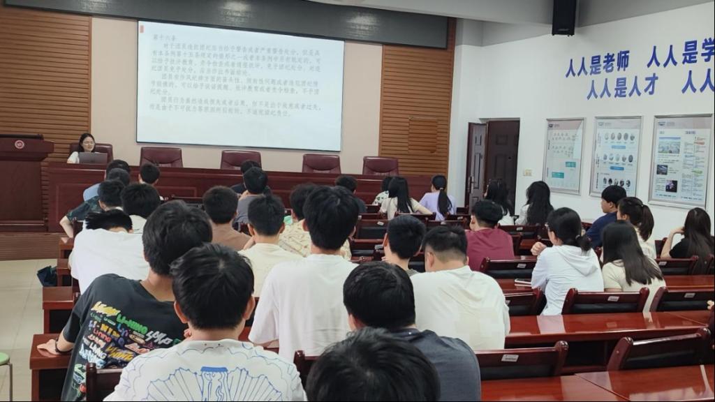 为深入学习贯彻习近平总书记关于青年工作的重要思想,切实加强0638太阳集团官网团员青年的纪律意识和组织观念,引导团员青年明规矩、知敬畏、存戒惧、守底线,筑牢思想根基,4月8日,学院团委书记屈佩斯给学院全体团支书讲授了“学条例 守纪律 强担当”主题团课,专题学习《中国共产主义青年团纪律处分条例(试行)》(以下简称《条例》)。
