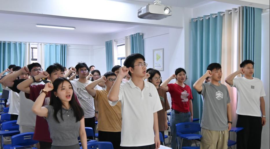 大会最后,支部书记洪思玮老师带领全体党员宣读入党誓词,对新转正的党员表示热烈祝贺并提出具体要求。她希望新党员要时刻牢记自己的党员身份,严格遵守党的纪律和规矩;要树立终身学习的理念,不断提高自己的综合素质;要勇于担当,在社会实践中锻炼自己,增长才干。