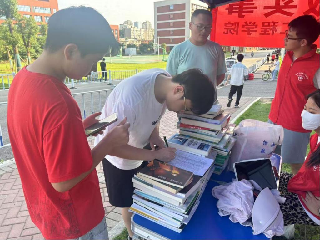 同时,学院还发起“爱心捐赠·知识共享”活动,倡议毕业生将闲置书籍捐赠至校图书馆,让知识在校园中得以延续。活动得到毕业生们的积极响应,两天内共收到各类教材、文学书籍等400余本赠书。这一活动不仅是知识的传递,更呼应着中国共产党始终倡导的奉献精神。