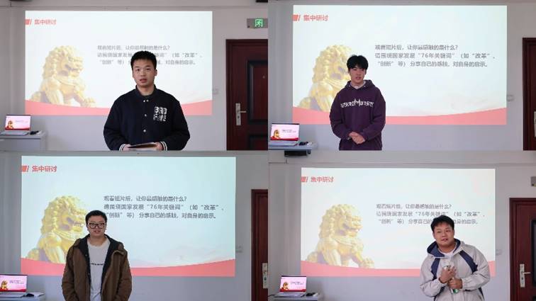 在专题学习环节,支部集体观看了央视新闻建国76周年特别视频《每一秒,前进!》,短片从海之盾、空之翼、陆之矛三个角度展现和平需要实力来捍卫,洪思玮以“实力”作为76年关键词展开集中研讨,从1840年中国因工业落后而被动挨打,到今天拥有世界全产业链和最强工业生产国,且国防、军事、轨道交通、人工智能、航天等领域领跑世界,这百年跨越印证了一个硬道理:打铁必须自身硬。接着,支部党员王国典、曾鲁湘、李培杰等纷纷分享“76年的发展,哪些关键词最能打动你?”围绕“梦想与现实的辩证”“创新”“改革”“担当”讲述祖国的发展及对个人的启示。