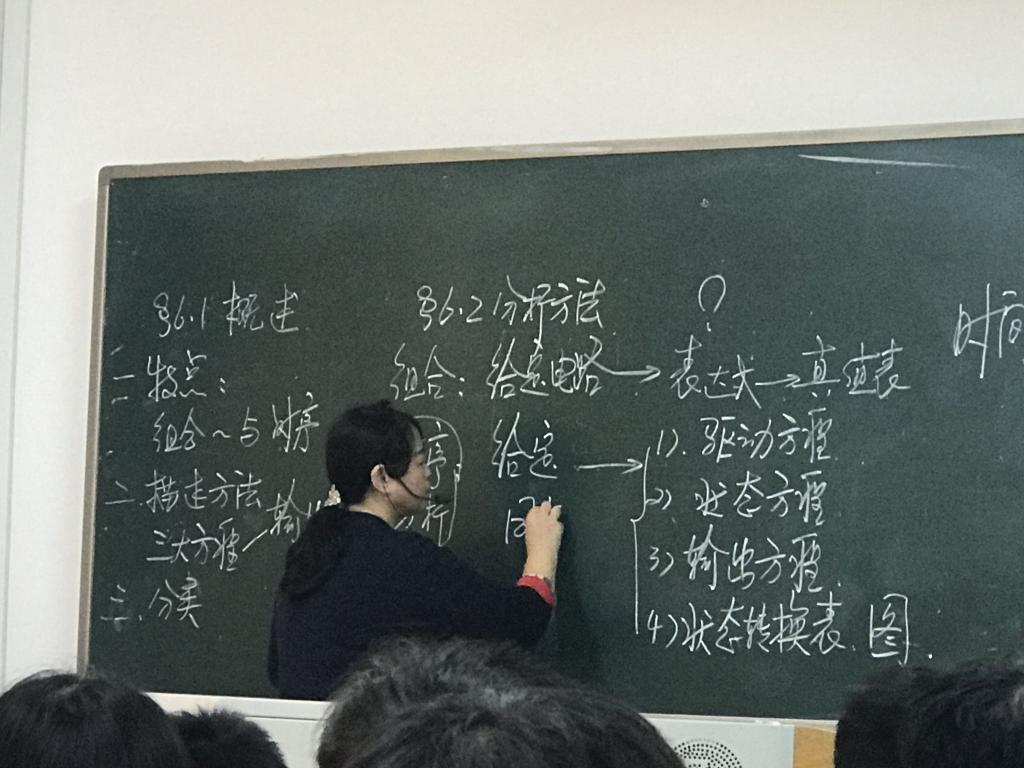 李立教授主讲的《时序逻辑电路》章节,围绕时序逻辑电路的分析方法、时序逻辑电路的设计方法、时序逻辑集成电路展开,采用传统板书与现代多媒体相结合的方式,板书整洁有序,课前准备充分,教学内容层层递进,知识点之间逻辑严密,展现出了扎实的教学功底。李立教授还走下讲台,走到学生中间,利用超星学习通软件,穿插在课堂教学过程中,给出题目,让学生抢答,与学生展开了良性互动,活跃了课堂气氛,充分提升了学生参与课堂的积极性和主动性,取得了良好的教学效果。