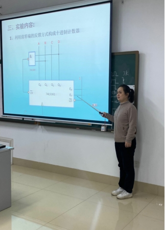 游红老师主讲的课程为《数字电子测试技术》,是一门单开课的实验课程,该课程是电类专业必修的专业基础课程。游红老师选取N进制计数器这个实验,联系理论课堂教学内容以及前面实验中所出现的操作问题,讲课深入浅出,课堂中穿插互动,以及在实验中耐心细致的指导学生,注重理论与实践相结合,引导学生树立工程意识。