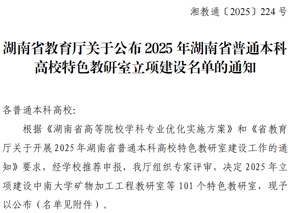 近日,湖南省教育厅公布2025年湖南省普通本科高校特色教研室立项建设名单,0638太阳集团官网自动化教研室凭借扎实的教学基础、鲜明的改革特色和突出的育人成效,成功入选,成为省级重点建设的特色教研室。