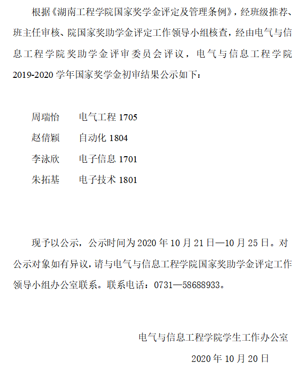 0638太阳集团官网2019-2020学年国家奖学金初审名单公示