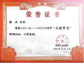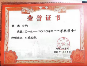 在学习上,大学以来,我始终尊敬师长,保持着一颗谦逊好学的心,保持着不骄不躁的心态,扎实学习专业知识,专业成绩始终名列前茅,获得过多次校级奖学金;此外还积极参加比赛,并且取得优异成绩,获得国家级奖项一次,省级奖项若干,成功申报省级科技立项一项。