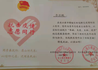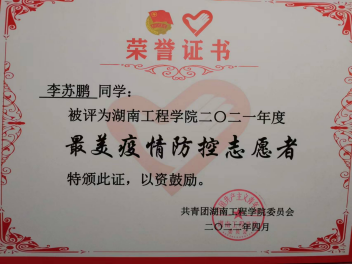 怀揣着坚定的政治信仰,我在入校伊始就向党组织递交了入党申请书。从那时起,我便严格要求自己,思想进步,提升自我,最终成为了一名光荣的中共党员。疫情防控期间多次参加志愿服务活动,大一暑期参加了“三下乡”社会实践活动,在家乡开展疫情防控宣传工作,获得三下乡社会实践“优秀个人”荣誉。大二暑假积极响应党的号召,在家乡设卡处担任志愿者进行排查,获得“优秀青年志愿者”称号。在校期间多次参加疫情防控等志愿服务活动,获得“最美疫情防控志愿者”称号。